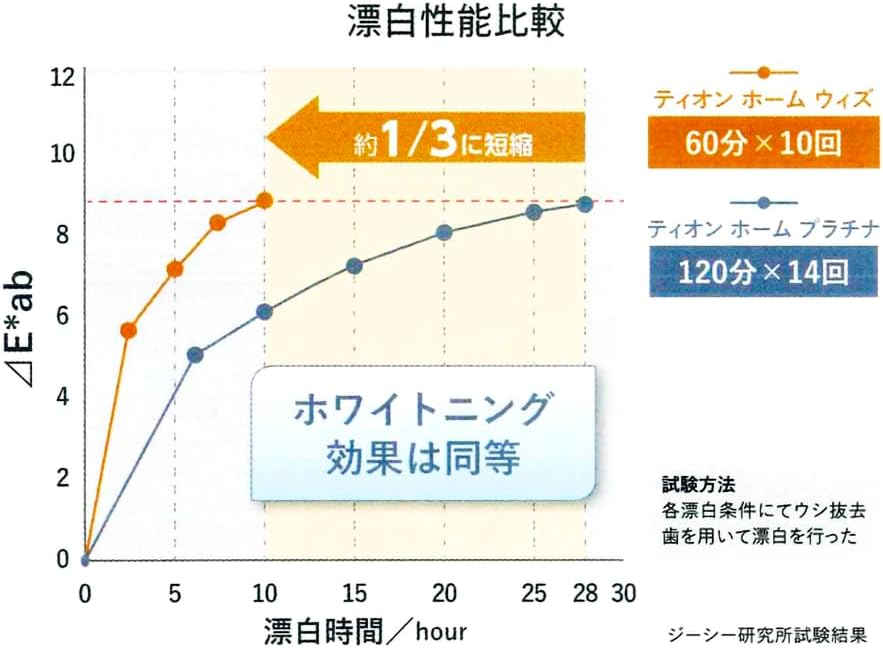 ティオンホームウィズは従来のティオンホームプラチナより有効成分濃度(現在日本で発売されいる商品で一番の成分濃度)が高く、使用時間・期間も短縮されます。高濃度で効率よくホワイントニングが出来ます。すき間時間を活用し簡単にホワイト二ングを始めてみませんか?