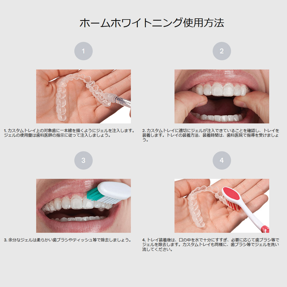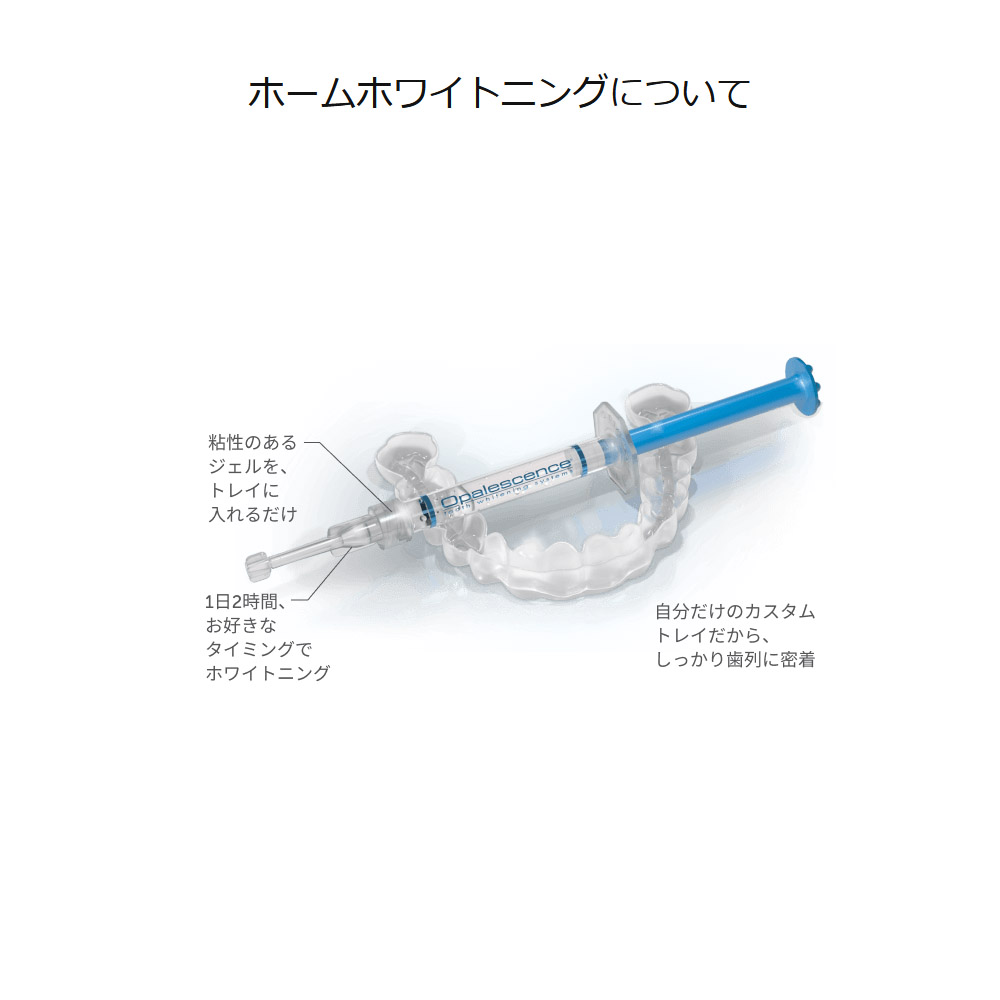 医療機器として承認されたホームホワイトニング材(歯科医師により診査後に家庭内で使用します)